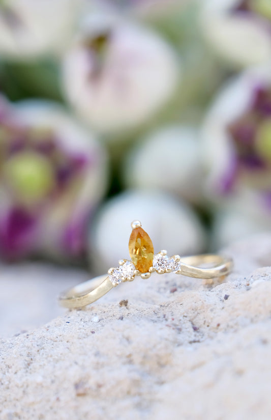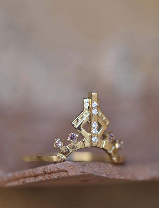SOAR Ring 14K Solid Gold Lab Diamonds & Natural Peach Sapphires.