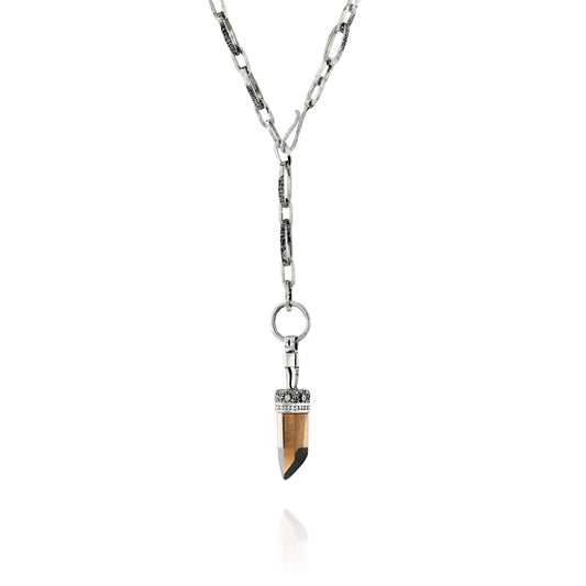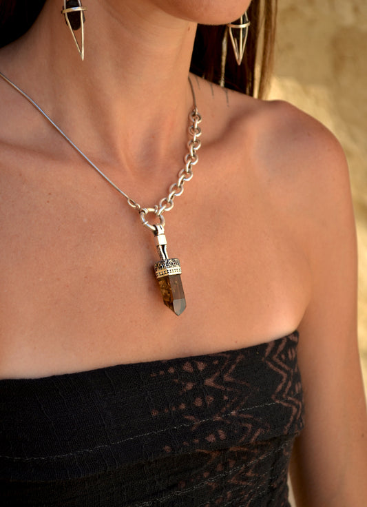OOAK- 2 in 1 Oversized Linked Chain Necklace, Medium SMOKEY QUARTZ Crystal Talisman