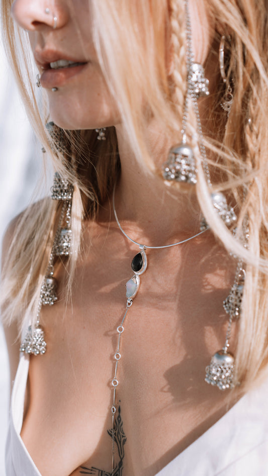 OOAK KAYA Necklace- Rough Ethiopian Opal & Black Onyx Cabochon