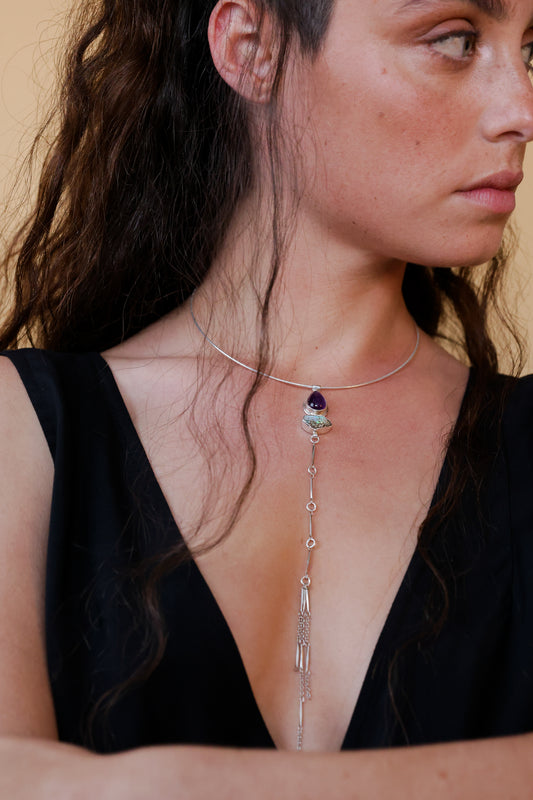 OOAK- KAYA Necklace- Rough Ethiopian Opal & Amethyst Cabochon
